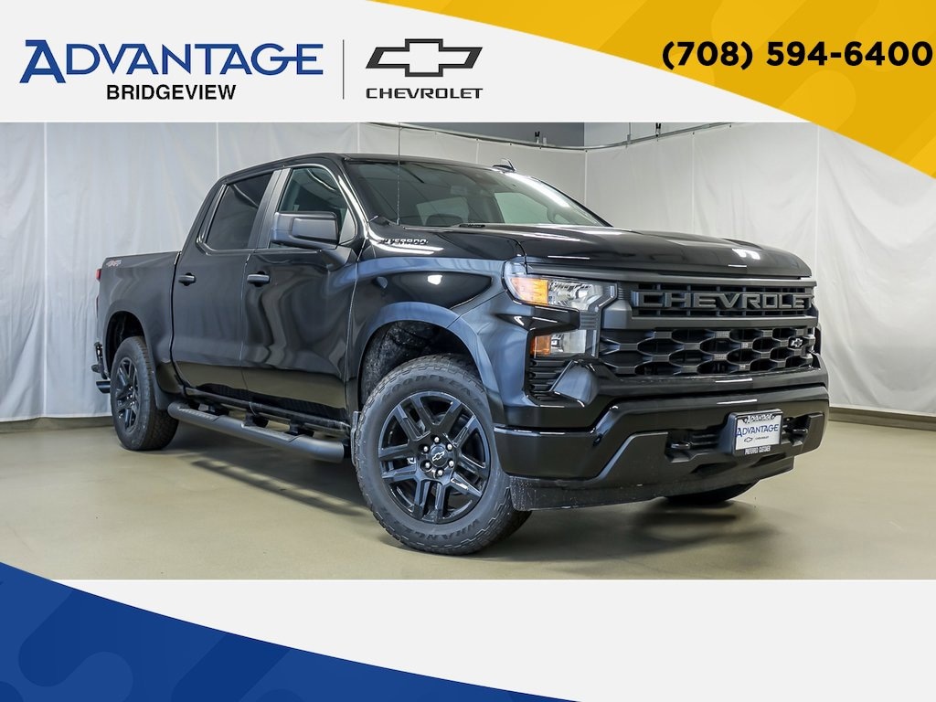 ** Apple CarPlay/Android Auto, ** Blind Spot Monitor, ** Camera Backup, ** Cruise Control, ** Satellite Radio, ** Steering Wheel Controls, ** USB Port, 10-Way Power Driver Seat w/Lumbar, 120-Volt Bed Mounted Power Outlet, 120-Volt Interior Power Outlet, 3.5 Monochromatic Display Driver Info Center, Black Name Plates (LPO), Bluetooth® For Phone, Color-Keyed Carpeting Floor Covering, Custom Convenience Package, Custom Value Package, Dark Essentials Package (LPO), Deep-Tinted Glass, Dual Rear USB Ports (Charge Only), Electric Rear-Window Defogger, Electronic Cruise Control, Electronic Stability Control, EZ Lift Power Lock & Release Tailgate, Front Frame-Mounted Black Recovery Hooks, Front Rubberized Vinyl Floor Mats, Fully automatic headlights, HD Rear Vision Camera, High Capacity Suspension Package, Hitch Guidance, LED Cargo Area Lighting, Manual Tilt Wheel Steering Column, OnStar Services Capable, Power Front Windows w/Driver Express Up/Down, Power Front Windows w/Passenger Express Down, Power Rear Windows w/Express Down, Preferred Equipment Group 1CX, Rear 60/40 Folding Bench Seat (Folds Up), Rear Rubberized-Vinyl Floor Mats, Remote Keyless Entry, Remote Vehicle Starter System, SiriusXM Trial Subscription, Standard Tailgate, Teen Driver, Theft Deterrent System (Unauthorized Entry), Tire Pressure Monitoring System, Trailering Package, Wi-Fi Hot Spot Capable.Factory MSRP: $51,170 $8,570 off MSRP! Black 2026 Chevrolet Silverado 1500 4D Crew Cab Custom 17/20 City/Highway MPG 2.7L I4 Turbocharged DOHC 16V LEV3-SULEV30 310hp 8-Speed Automatic 4WDThere are numerous reasons why drivers choose Advantage Chevrolet Of Bridgeview. Proudly serving Bridgeview, Chicago, Oak Lawn, Justice, Hickory Hills, Orland Park, IL, our teams of sales advisers, service technicians and financing experts are trained with one focus in mind: addressing each of your needs with the utmost respect, care and attention to detail. That means you can expect to learn all of the features of the specific new Chevrolet Tahoe, Malibu Silverado, that you're interested in. In the market for an used car? Our team will be happy to fill you in on each of the reliable options in our inventory. And when the time comes for you to drive home your next car, our sales staff is standing by with solutions to fit your individual needs. At Advantage Chevrolet Of Bridgeview, our commitment to excellence does not end with the sale, though. In order to ensure a positive ownership experience, we staff an onsite auto service and repair department. And for those of you who prefer to perform their own work, we also maintain a vast collection of auto parts for sale in Bridgeview. Advantage Chevrolet of Bridgeview truly has every one of your automotive needs covered. The only question left now is how we can best serve you. To take advantage of any one (or more) of our services, be sure to contact us today. Or, stop by and see us in person at 8200 S Harlem Chicago Illinois today.Custom Convenience Package (Electric Rear-Window Defogger, EZ Lift Power Lock & Release Tailgate, LED Cargo Area Lighting, Remote Vehicle Starter System, and Theft Deterrent System (Unauthorized Entry)), Custom Value Package, Dark Essentials Package (LPO) (Black Name Plates (LPO)), High Capacity Suspension Package, Preferred Equipment Group 1CX (10-Way Power Driver Seat w/Lumbar, 120-Volt Bed Mounted Power Outlet, 120-Volt Interior Power Outlet, 3.5 Monochromatic Display Driver Info Center, Bluetooth® For Phone, Color-Keyed Carpeting Floor Covering, Deep-Tinted Glass, Dual Rear USB Ports (Charge Only), Electronic Cruise Control, Front Frame-Mounted Black Recovery Hooks, Front Rubberized Vinyl Floor Mats, HD Rear Vision Camera, Manual Tilt Wheel Steering Col Price includes: $1000 - GM Bonus Cash. Exp. 11/03/2025 $1250 - Chevrolet Trade Assistance Bonus Cash Program. Exp. 11/03/2025 $1500 - Active UAW-GM Hourly Employee Vehicle Allowance. Exp. 01/02/2026 $1750 - Chevrolet Consumer Cash Program. Exp