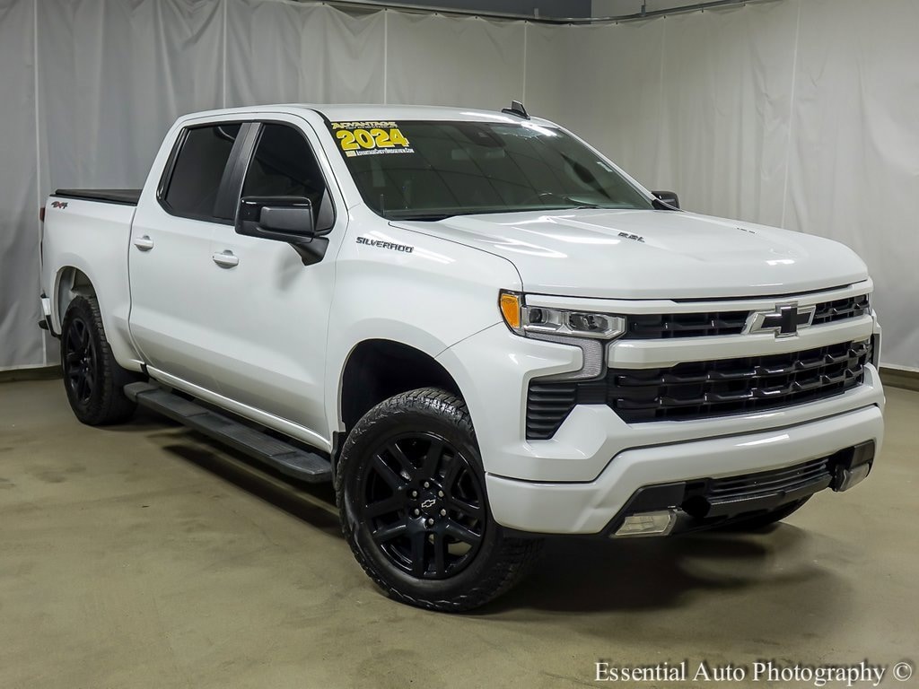 10-Speed Automatic, 4WD, Black Cloth.Priced below KBB Fair Purchase Price! CARFAX One-Owner. Certified. Summit White 2024 Chevrolet Silverado 1500 4D Crew Cab EcoTec3 6.2L V8 10-Speed Automatic 4WD RSTThere are numerous reasons why drivers choose Advantage Chevrolet Of Bridgeview. Proudly serving Bridgeview, Chicago, Oak Lawn, Justice, Hickory Hills, Orland Park, IL, our teams of sales advisers, service technicians and financing experts are trained with one focus in mind: addressing each of your needs with the utmost respect, care and attention to detail. That means you can expect to learn all of the features of the specific new Chevrolet Tahoe, Malibu Silverado, that you're interested in. In the market for an used car? Our team will be happy to fill you in on each of the reliable options in our inventory. And when the time comes for you to drive home your next car, our sales staff is standing by with solutions to fit your individual needs. At Advantage Chevrolet Of Bridgeview, our commitment to excellence does not end with the sale, though. In order to ensure a positive ownership experience, we staff an onsite auto service and repair department. And for those of you who prefer to perform their own work, we also maintain a vast collection of auto parts for sale in Bridgeview. Advantage Chevrolet of Bridgeview truly has every one of your automotive needs covered. The only question left now is how we can best serve you. To take advantage of any one (or more) of our services, be sure to contact us today. Or, stop by and see us in person at 8200 S Harlem Chicago Illinois today.Certification Program Details: CarBravo Certified!! 173 Point Inspection!! Have piece of mind with a CarBravo Certified Used Vehicle. Less than 10 model years old and 100,000 miles, you'll get 12-month/12,000-mile * Limited Bumper-to-Bumper Warranty coverage with no deductible. If the vehicle is still under Factory Warranty you get an extension for 12 months and additional 12000 miles.