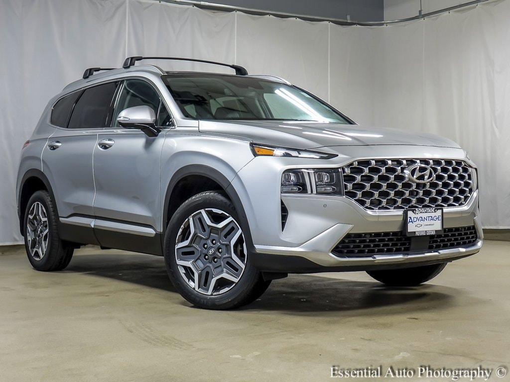 AWD, Black w/Leather Seat Trim, Alloy wheels, Navigation System, Option Group 01, Power moonroof, Wheels: 19 x 7.5J Alloy.Recent Arrival! Priced below KBB Fair Purchase Price! Odometer is 1516 miles below market average! Certified. Shimmering Silver Pearl 2022 Hyundai Santa Fe 4D Sport Utility I4 Shiftronic AWD LimitedThere are numerous reasons why drivers choose Advantage Chevrolet Of Bridgeview. Proudly serving Bridgeview, Chicago, Oak Lawn, Justice, Hickory Hills, Orland Park, IL, our teams of sales advisers, service technicians and financing experts are trained with one focus in mind: addressing each of your needs with the utmost respect, care and attention to detail. That means you can expect to learn all of the features of the specific new Chevrolet Tahoe, Malibu Silverado, that you're interested in. In the market for an used car? Our team will be happy to fill you in on each of the reliable options in our inventory. And when the time comes for you to drive home your next car, our sales staff is standing by with solutions to fit your individual needs. At Advantage Chevrolet Of Bridgeview, our commitment to excellence does not end with the sale, though. In order to ensure a positive ownership experience, we staff an onsite auto service and repair department. And for those of you who prefer to perform their own work, we also maintain a vast collection of auto parts for sale in Bridgeview. Advantage Chevrolet of Bridgeview truly has every one of your automotive needs covered. The only question left now is how we can best serve you. To take advantage of any one (or more) of our services, be sure to contact us today. Or, stop by and see us in person at 8200 S Harlem Chicago Illinois today.Certification Program Details: CarBravo Certified!! 173 Point Inspection!! Have piece of mind with a CarBravo Certified Used Vehicle. Less than 10 model years old and 100,000 miles, you'll get 12-month/12,000-mile * Limited Bumper-to-Bumper Warranty coverage with no deductible. If the vehicle is still under Factory Warranty you get an extension for 12 months and additional 12000 miles.