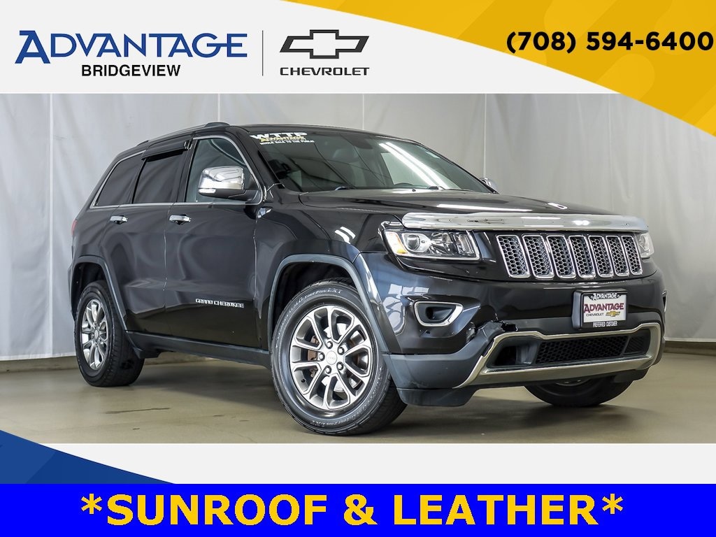 ** Alloy Wheels / Premium Wheels, ** Cruise Control, *WHOLESALE TO THE PUBLIC SEE DEALER FOR DETAILS*, 18 x 8.0 Aluminum Polished Wheels, Automatic temperature control, Electronic Stability Control, Exterior Parking Camera Rear, Front anti-roll bar, Fully automatic headlights, Heated door mirrors, Heated front seats, Heated rear seats, Memory seat, Overhead airbag, Power driver seat, Power Liftgate, Quick Order Package 23H, Radio: Uconnect 5.0 AM/FM/BT, Rear anti-roll bar, Remote keyless entry, Security system, SIRIUSXM Satellite Radio, Steering wheel mounted audio controls, Telescoping steering wheel, Traction control, Turn signal indicator mirrors.Odometer is 14669 miles below market average! Brilliant Black Crystal Pearlcoat 2014 Jeep Grand Cherokee 4D Sport Utility 3.6L V6 Flex Fuel 24V VVT 8-Speed Automatic 4WD LimitedThere are numerous reasons why drivers choose Advantage Chevrolet Of Bridgeview. Proudly serving Bridgeview, Chicago, Oak Lawn, Justice, Hickory Hills, Orland Park, IL, our teams of sales advisers, service technicians and financing experts are trained with one focus in mind: addressing each of your needs with the utmost respect, care and attention to detail. That means you can expect to learn all of the features of the specific new Chevrolet Tahoe, Malibu Silverado, that you're interested in. In the market for an used car? Our team will be happy to fill you in on each of the reliable options in our inventory. And when the time comes for you to drive home your next car, our sales staff is standing by with solutions to fit your individual needs. At Advantage Chevrolet Of Bridgeview, our commitment to excellence does not end with the sale, though. In order to ensure a positive ownership experience, we staff an onsite auto service and repair department. And for those of you who prefer to perform their own work, we also maintain a vast collection of auto parts for sale in Bridgeview. Advantage Chevrolet of Bridgeview truly has every one of your automotive needs covered. The only question left now is how we can best serve you. To take advantage of any one (or more) of our services, be sure to contact us today. Or, stop by and see us in person at 8200 S Harlem Chicago Illinois today.Reviews:* If you are on the prowl for an American-made 5-passenger SUV with high-style and genuine off-road chops, the 2014 Jeep Grand Cherokee is a solid choice. Thanks to an alluring new array of in-vehicle electronics, the Grand Cherokee is also one of the most technologically advanced entrants in the category. Source: KBB.com* Strong and fuel-efficient engine lineup, including a new diesel V6; upscale interior; plenty of luxury and technology-oriented features; irrefutable off-road ability; outlandish SRT model. Source: EdmundsAwards:* 2014 IIHS Top Safety Pick